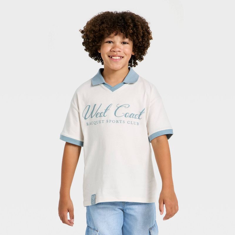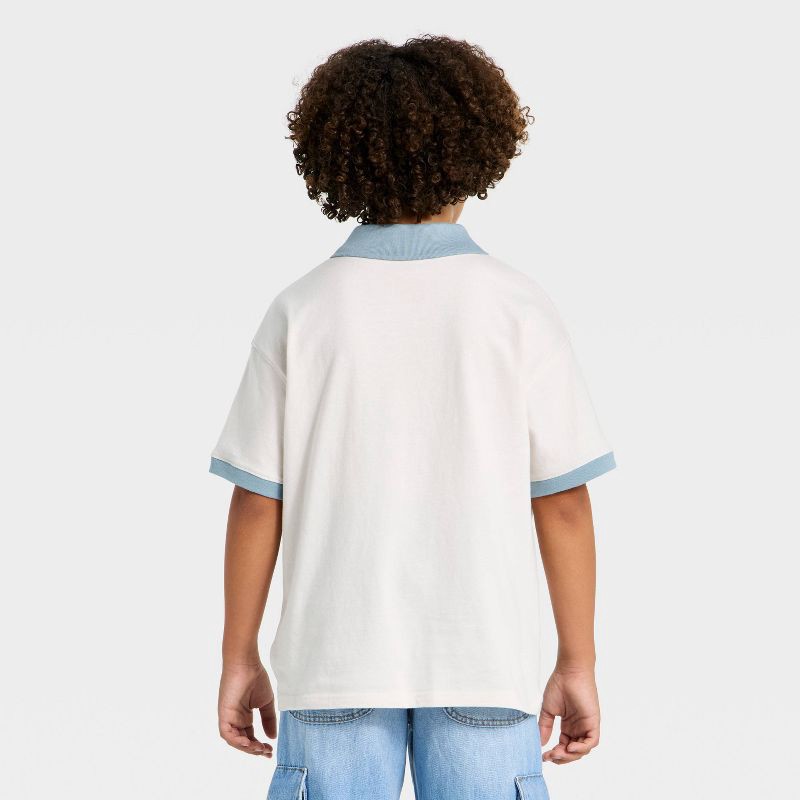 Boys' Short Sleeve Printed Polo Jersey Shirt - Cat & Jack™ Cream XL