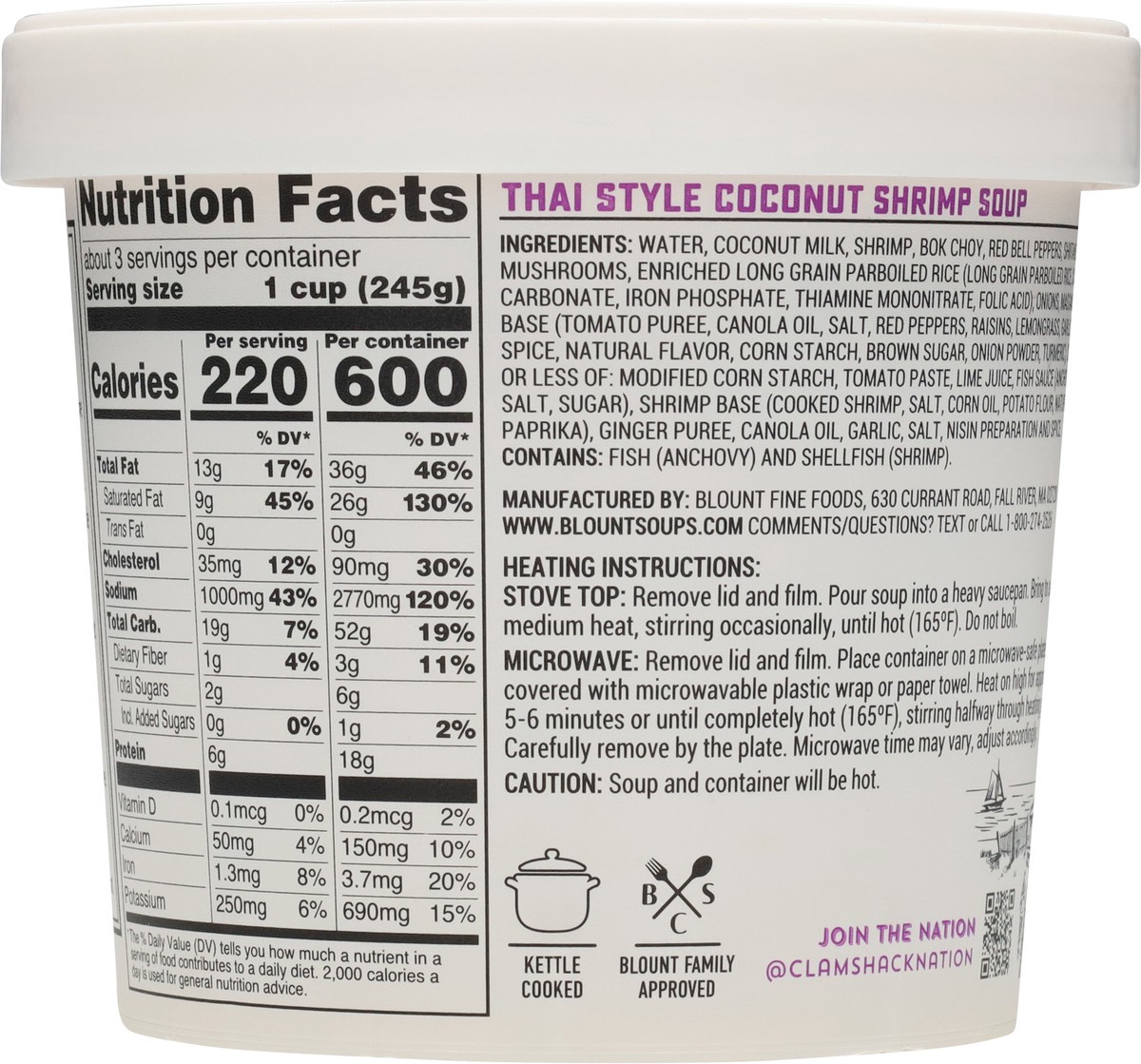 Blount Clam Shack Thai Style Coconut Shrimp Soup 24 oz