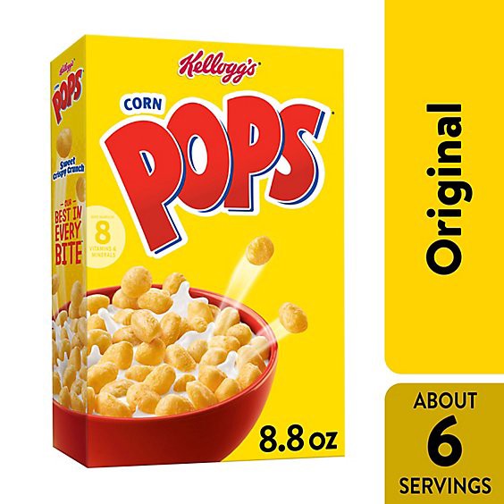Wake up to sweet, crispy Kellogg's Corn Pops. Every irresistible bowl delivers the consistently crunchy, sweetened popped-up corn experience that's been serving up smiles for years. Corn Pops cereal p…