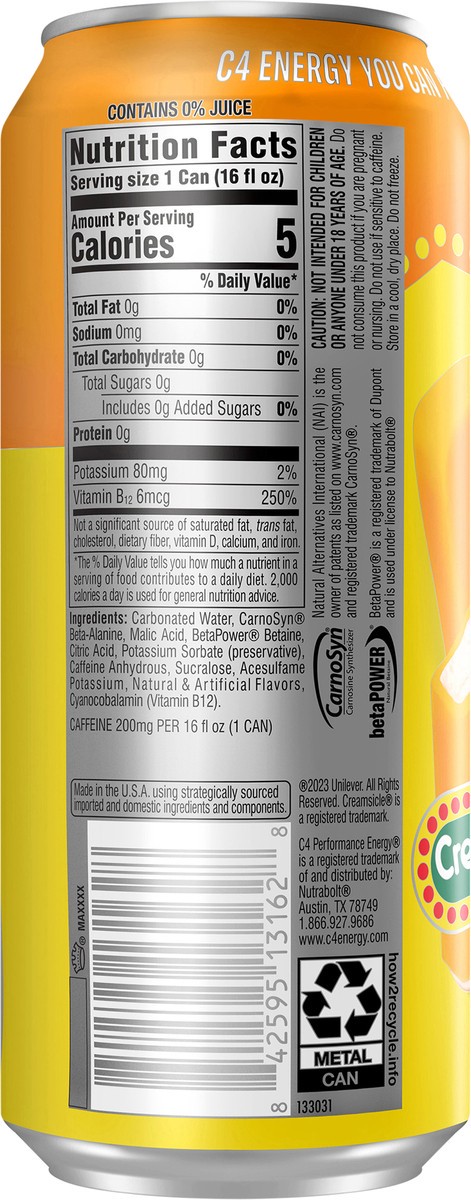 C4 Sport Sport Performance Creamsicle Energy Drink, 16 fl oz Can