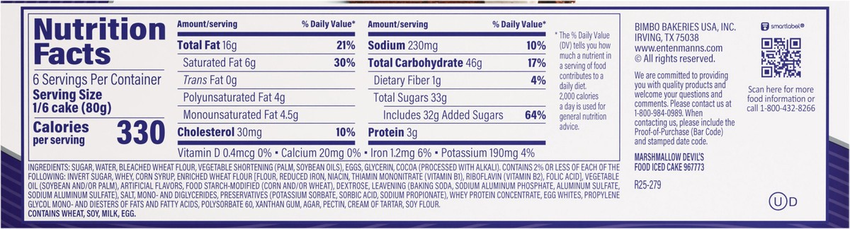 Entenmann's Marshmallow Devil's Food Iced Cake, 17 oz