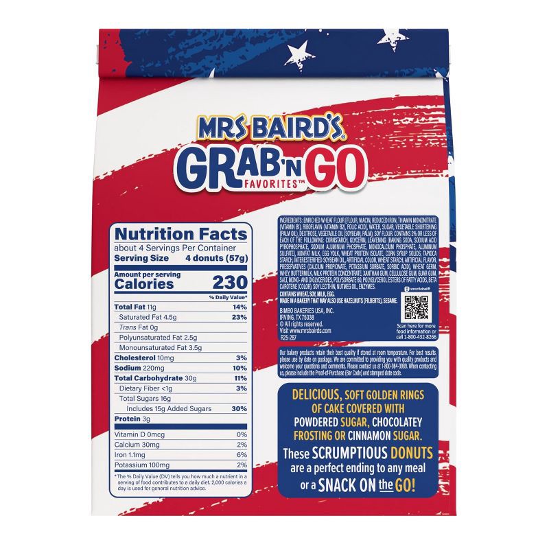 Indulge in the delightful taste of Mrs Baird's Grab N' Go Powdered Sugar Donuts, 9 oz, Mini Donuts, Bag, a delicious treat perfect for any time of day. These donuts offer the classic appeal of plain d…
