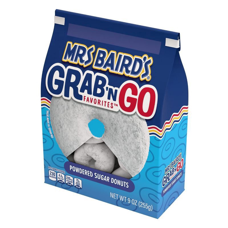 Mrs. Baird's Grab N' Go Powdered Sugar Mini Donuts, 9 oz