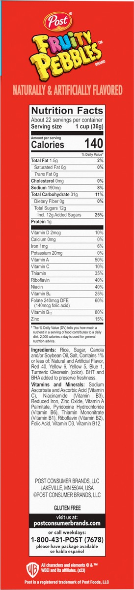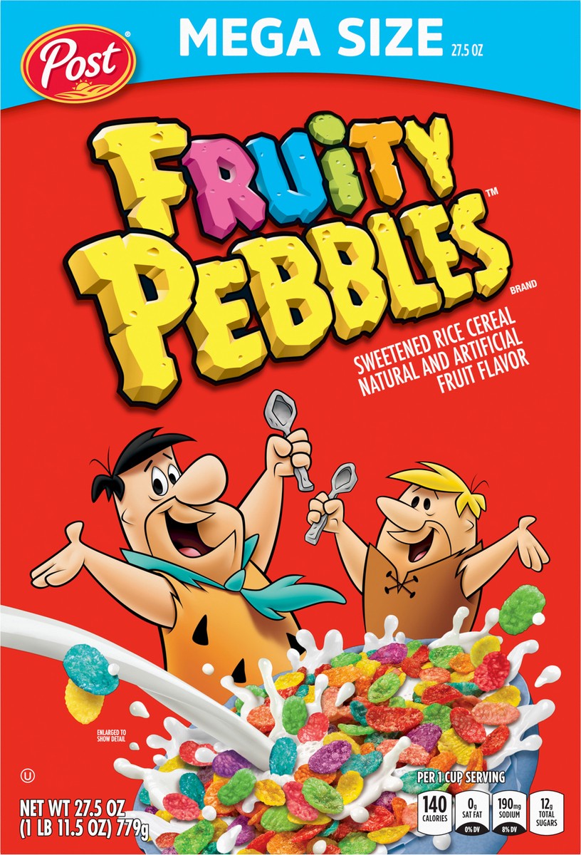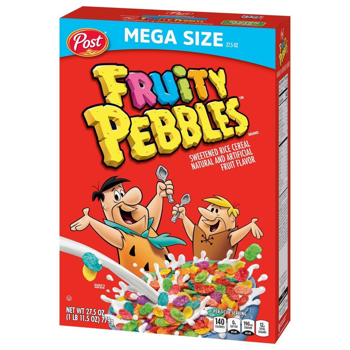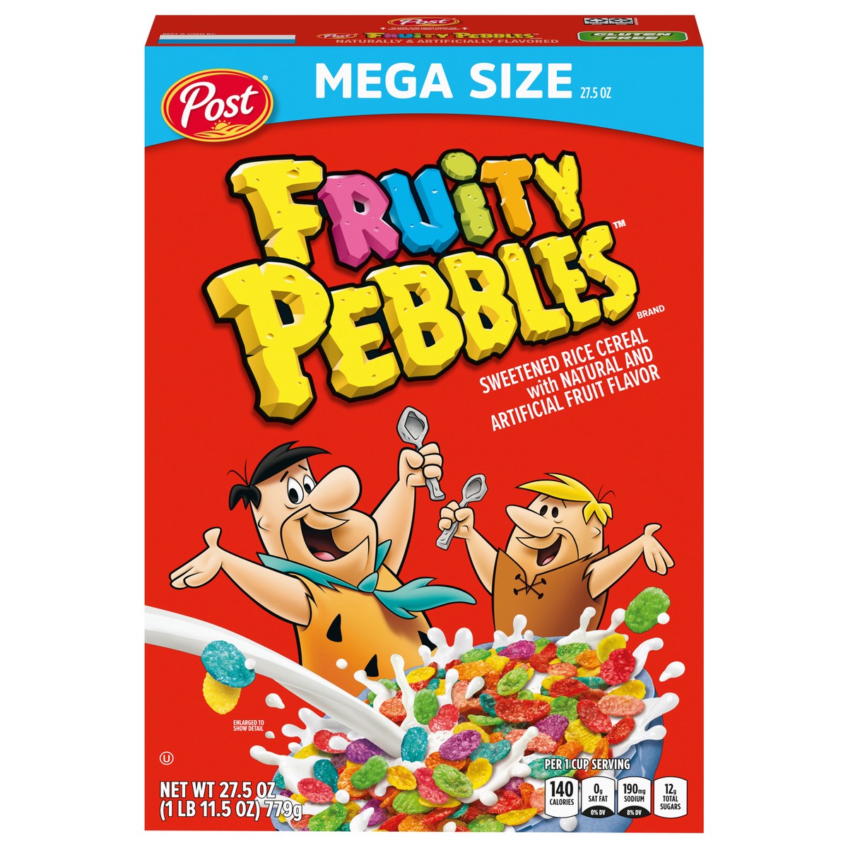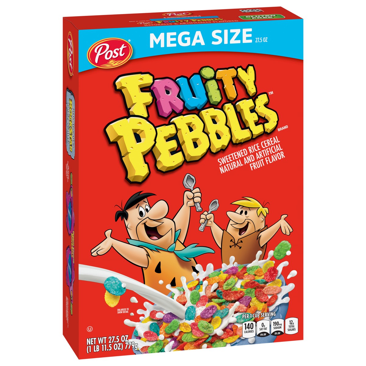 - One 27.5 oz box of Post Fruity PEBBLES Cereal