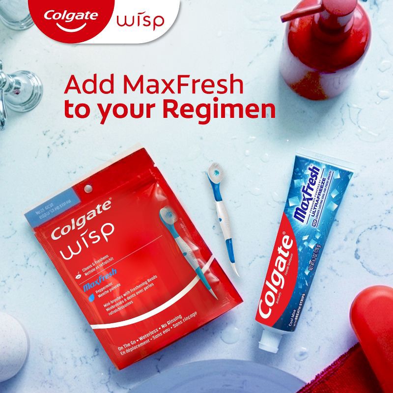 - Colgate Max Fresh Wisp mini toothbrushes cleans teeth on-the-go