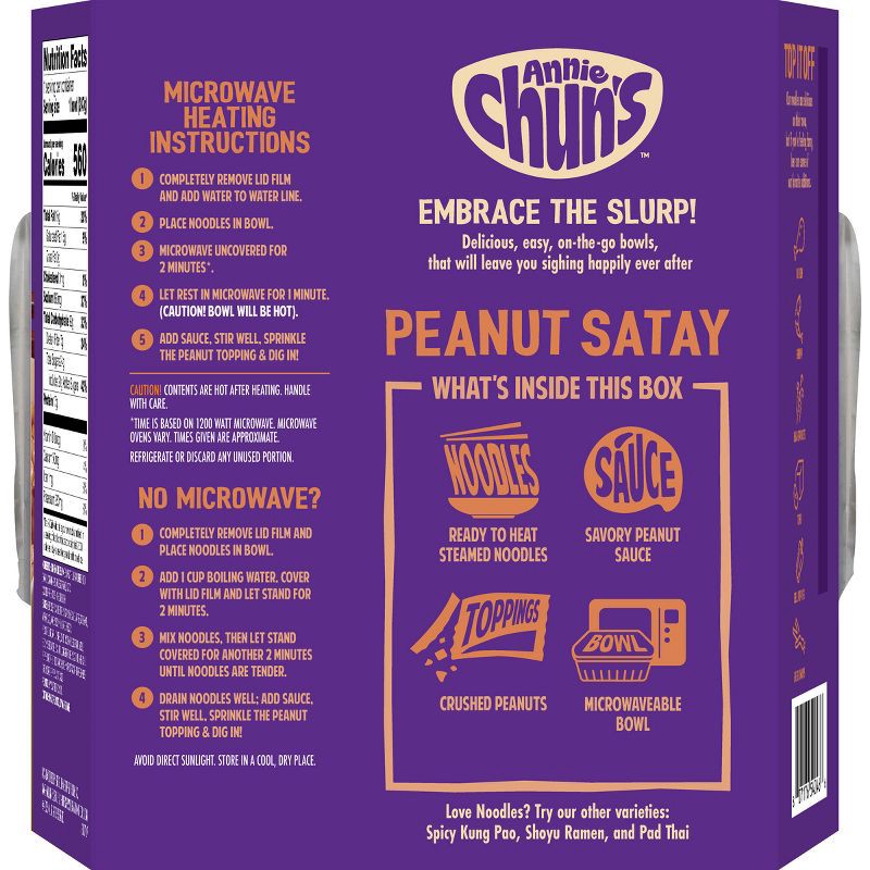 - One 8.71 oz. Annie Chun's Peanut Satay Noodle Bowl