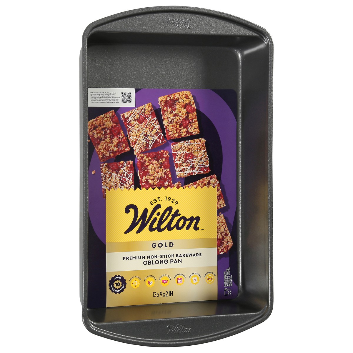 13 x 9 x 2 in. Est. 1929. Premium non-stick bakeware. Oblong pan. Resists warping. Made without PFAS. Dishwasher safe. Scratch resistant. Oven safe to 450 degrees. Food safe. 10 year limited warranty.…