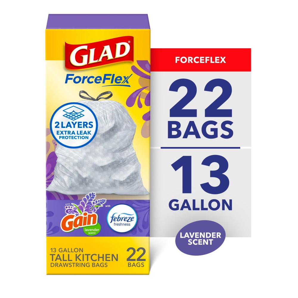 Glad ForceFlex Tall Kitchen Trash BagsGain Lavender Scent with Febreze