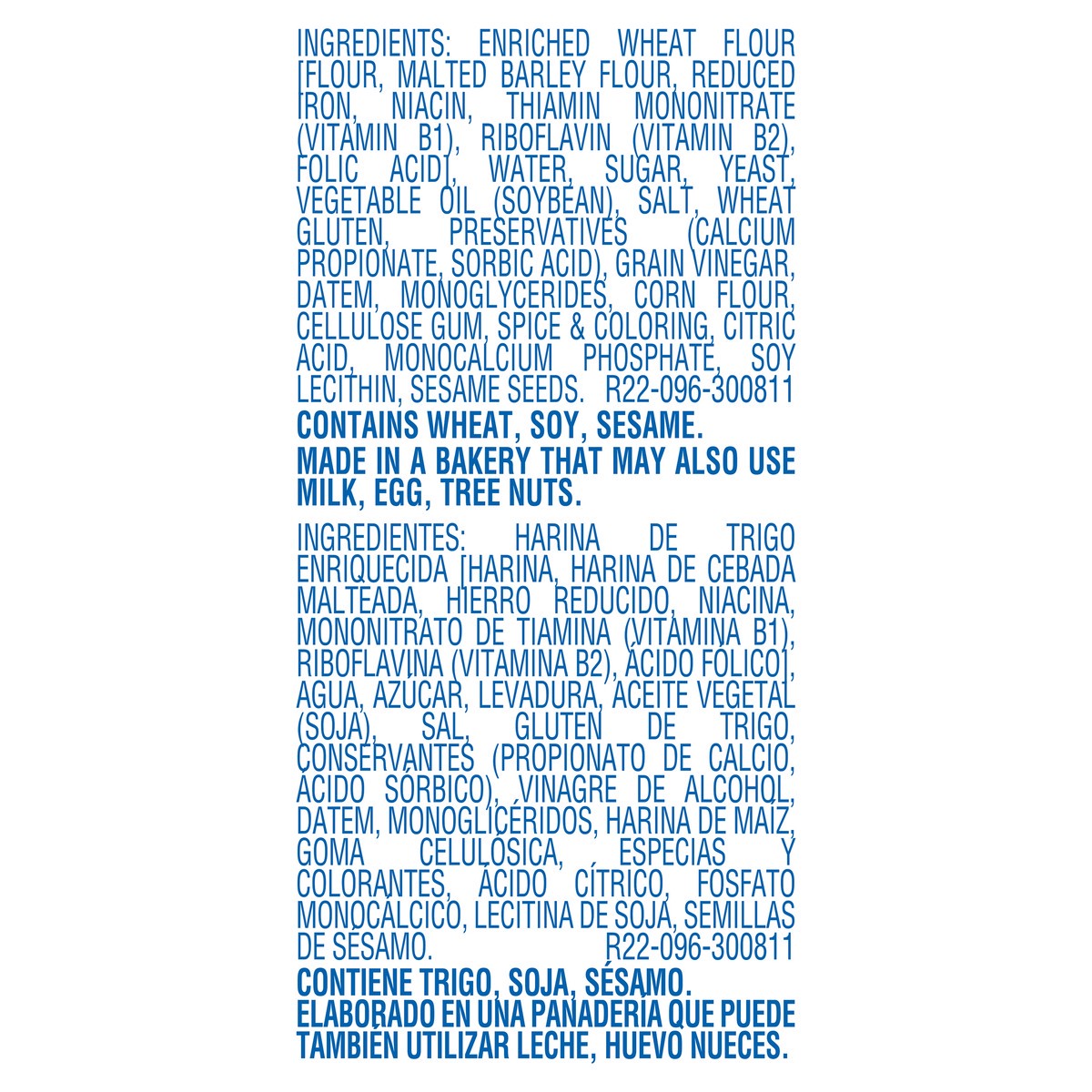 Enriched Wheat Flour [Flour, Malted Barley Flour, Reduced Iron, Niacin, Thiamin Mononitrate (Vitamin B1), Riboflavin (Vitamin B2), Folic Acid], Water, Sugar, Yeast, Soybean Oil, Salt, Wheat Gluten, Pr…