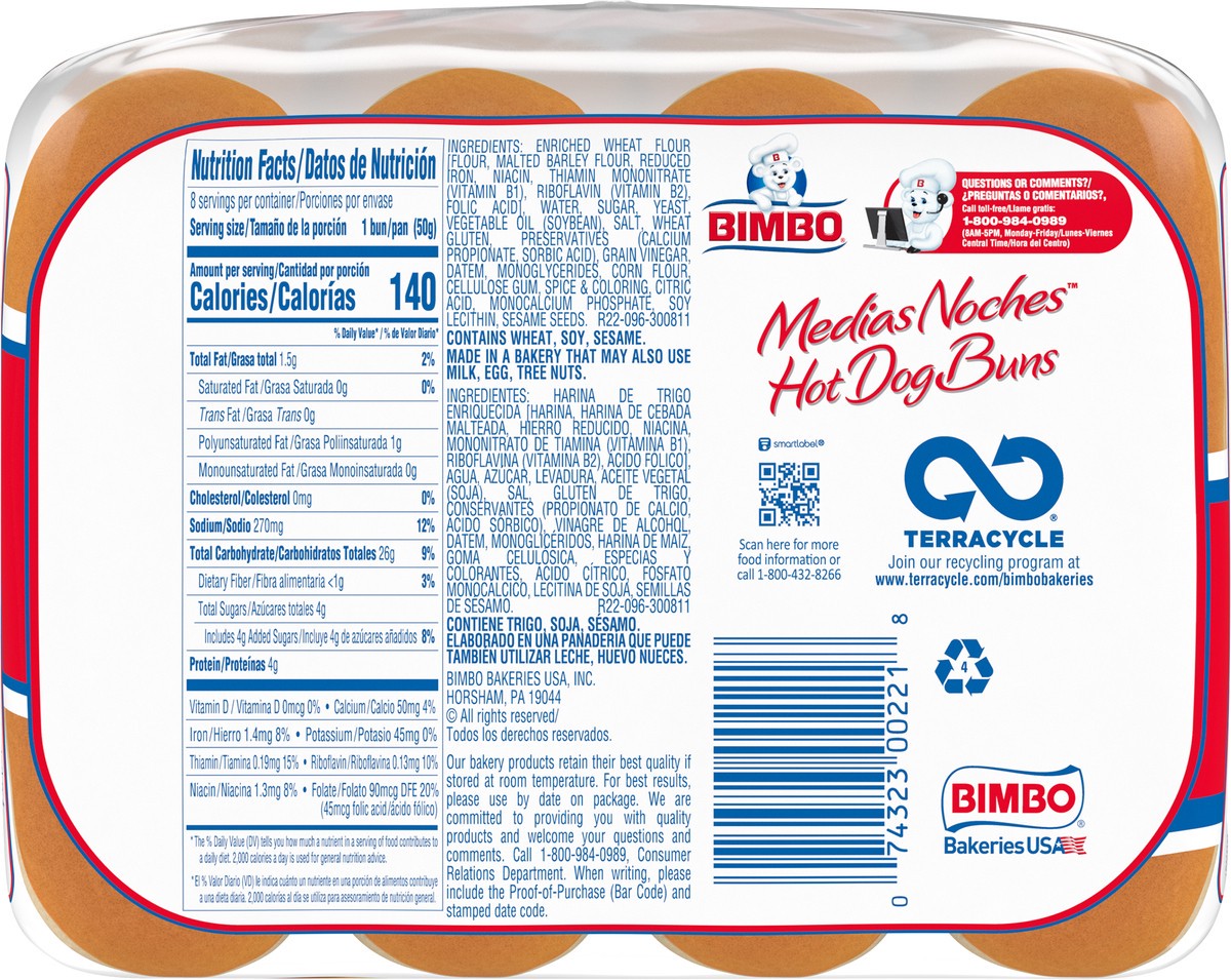 Bimbo Medias Noches Hot Dog Buns - 14 Oz