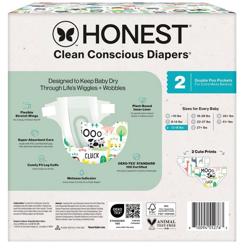 The Honest Company Clean Conscious Diapers MC Giraffes + Barnyard Babies - Size 2 - 72ct