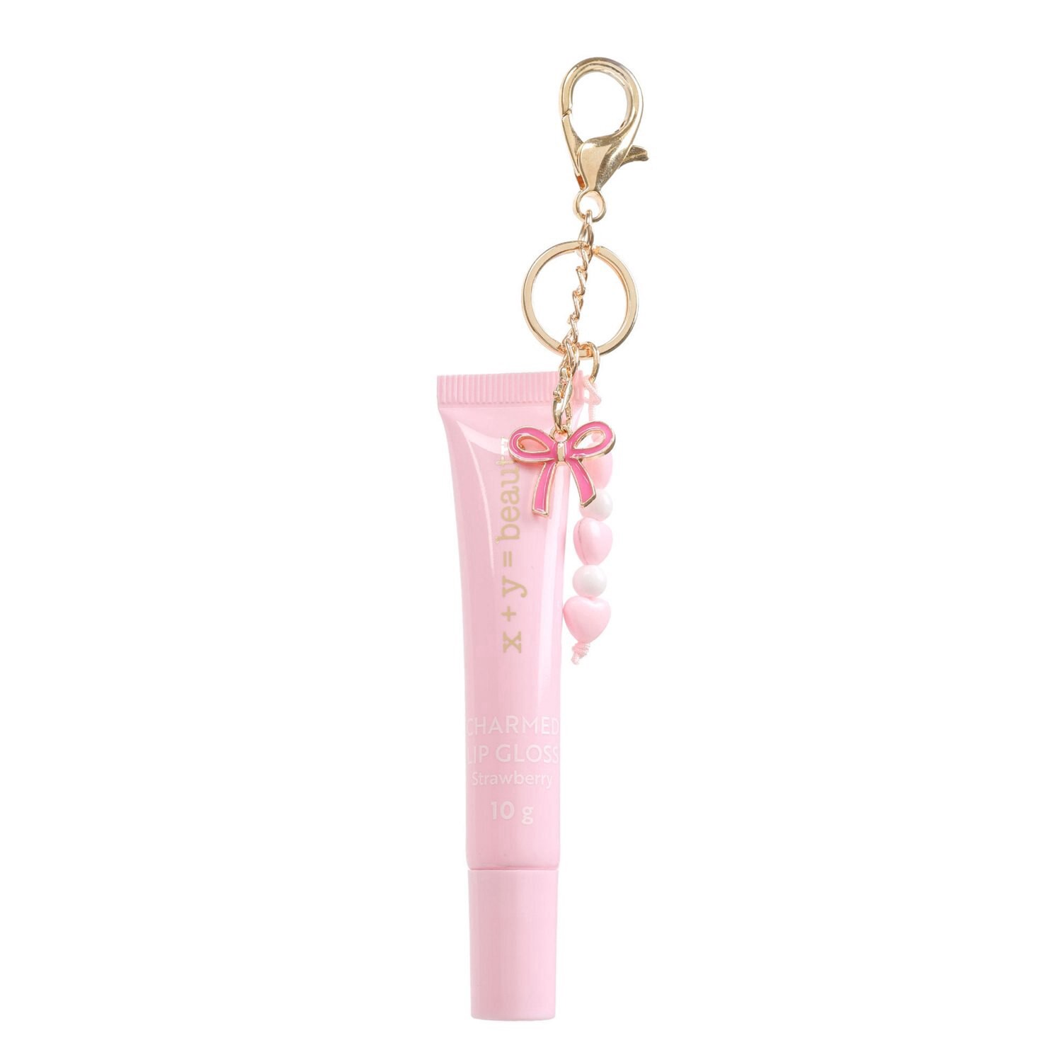 Charmed Lip Gloss delivers glossy shine and comes paired with a charm for a playful finish. Bow charm + beads Zinc alloy + Paint Charm Strawberry