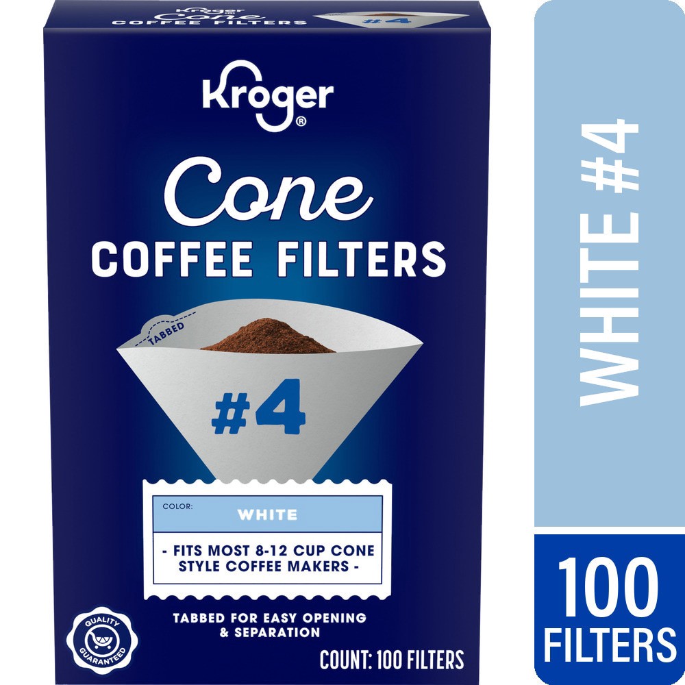 Kroger® #4 White Cone Coffee Filters bring out the best in your brew! These filters are the perfect partner for Kroger® and Private Selection® ground coffees. Mild, bold, smooth, complex, chocolaty, s…