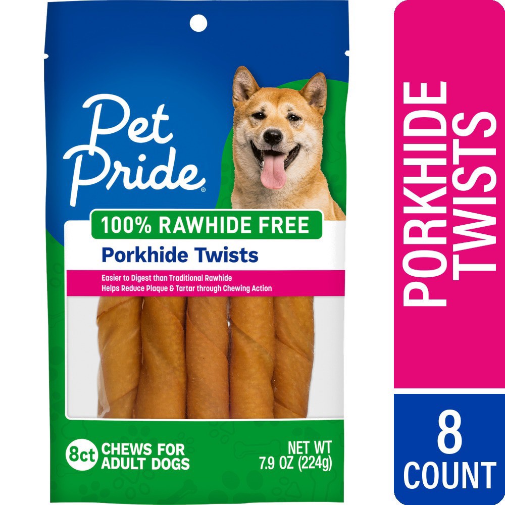 Pet Pride Rawhide Free Porkhide Twist Chews Adult Dog Treats, 8 ct / 7.9 oz