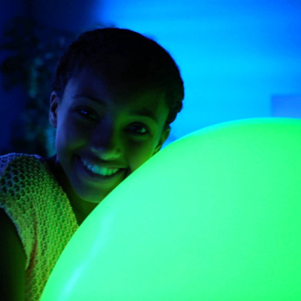 Small Parts. Not for children under 3 yrs. Super Wubble Brite with LED Color Changing Light Up, Changes from Blue to Red To Purple and Green. Full Sized Wubble Play Ball