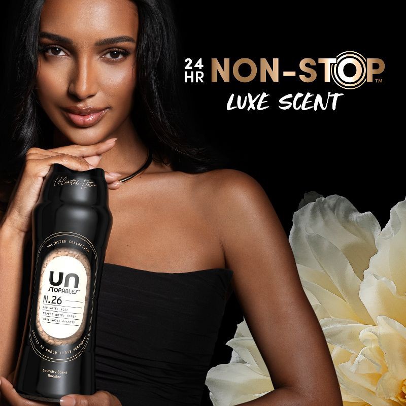 - Includes one 4.8 oz bottle of Downy Unstopables Unlimited Collection In-Wash Laundry Scent Booster Beads in fragrance No. 26