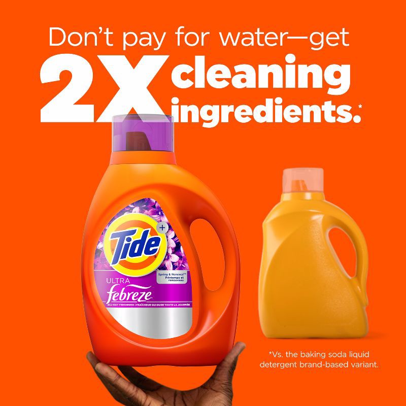 - Includes one 73 fl oz bottle of Tide Ultra Febreze Liquid Laundry Detergent, Spring and Renewal scent, enough for 52 loads