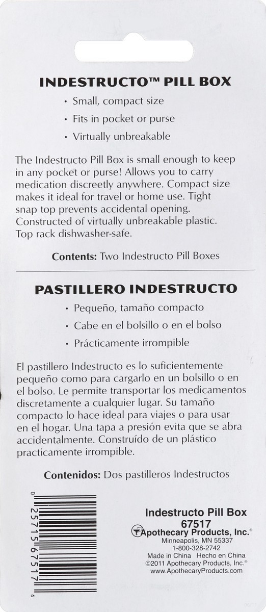 Compact size for travel. Perfect for small item storage. Virtually unbreakable. Small, compact size. Fits in pocket or purse. The Indestructo Pill Box is small enough to keep in any pocket or purse! A…
