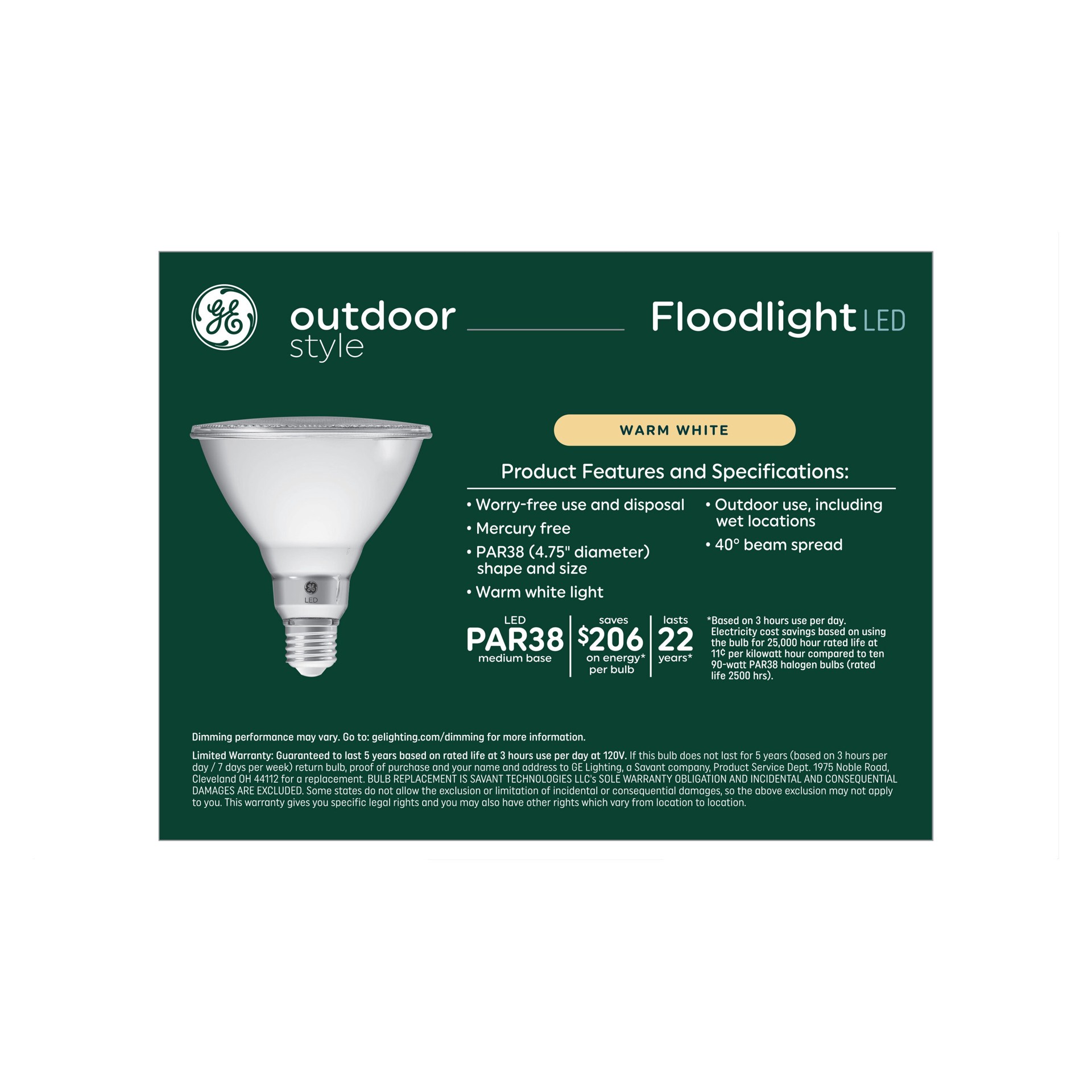 GE Outdoor Style 90 -Watt EQ PAR38 Warm white Medium screw base E26 Dimmable LED Spot Flood Light Bulb 2 -Pack
