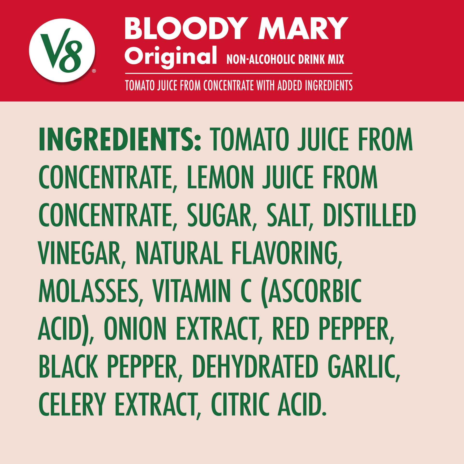 Make happy hour a little easier with V8 Bloody Mary Mix. Made with tomato juice and a perfect blend of spices, this non-alcoholic cocktail mix packs a punch to make every sip as delicious as the next.…