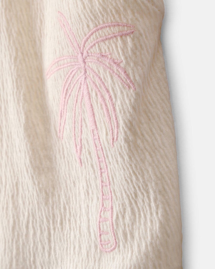 Carter's Girls Palm Tree Embroidered Gauze Shorts - Cream - Size 12