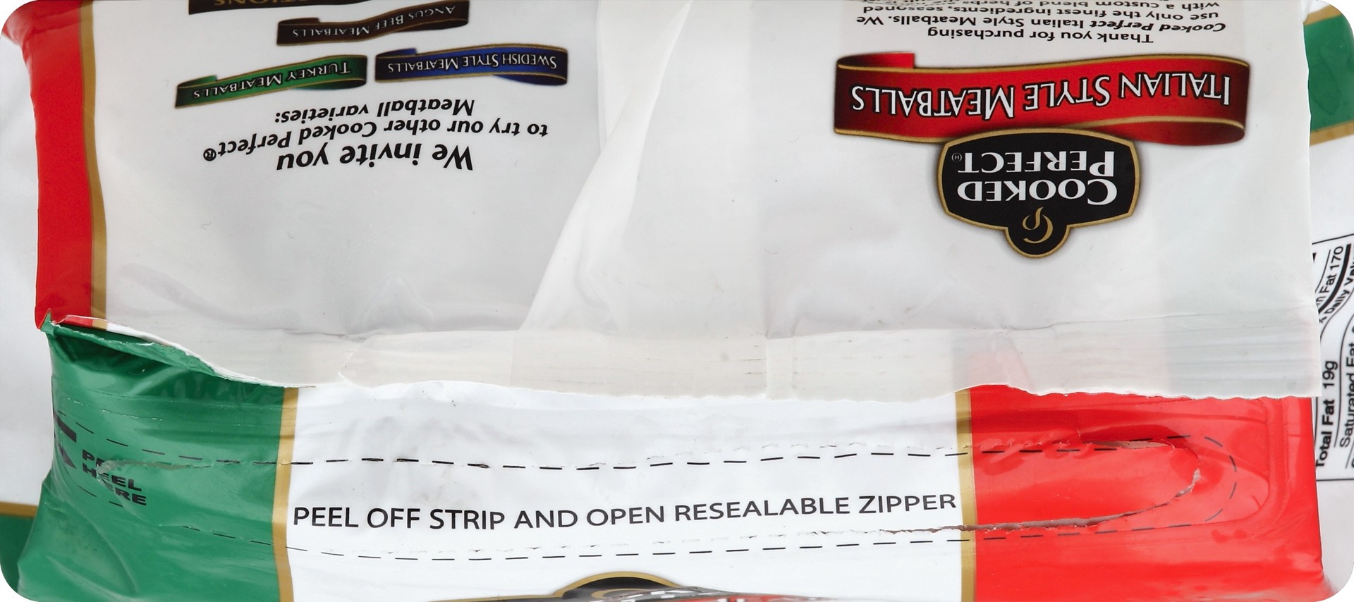 1/2 ounce. Flame broiled. US inspected and passed by Department of Agriculture. Thank you for purchasing Cooked Perfect Italian Style Meatballs. We use only the finest ingredients, seasoned with a cus…