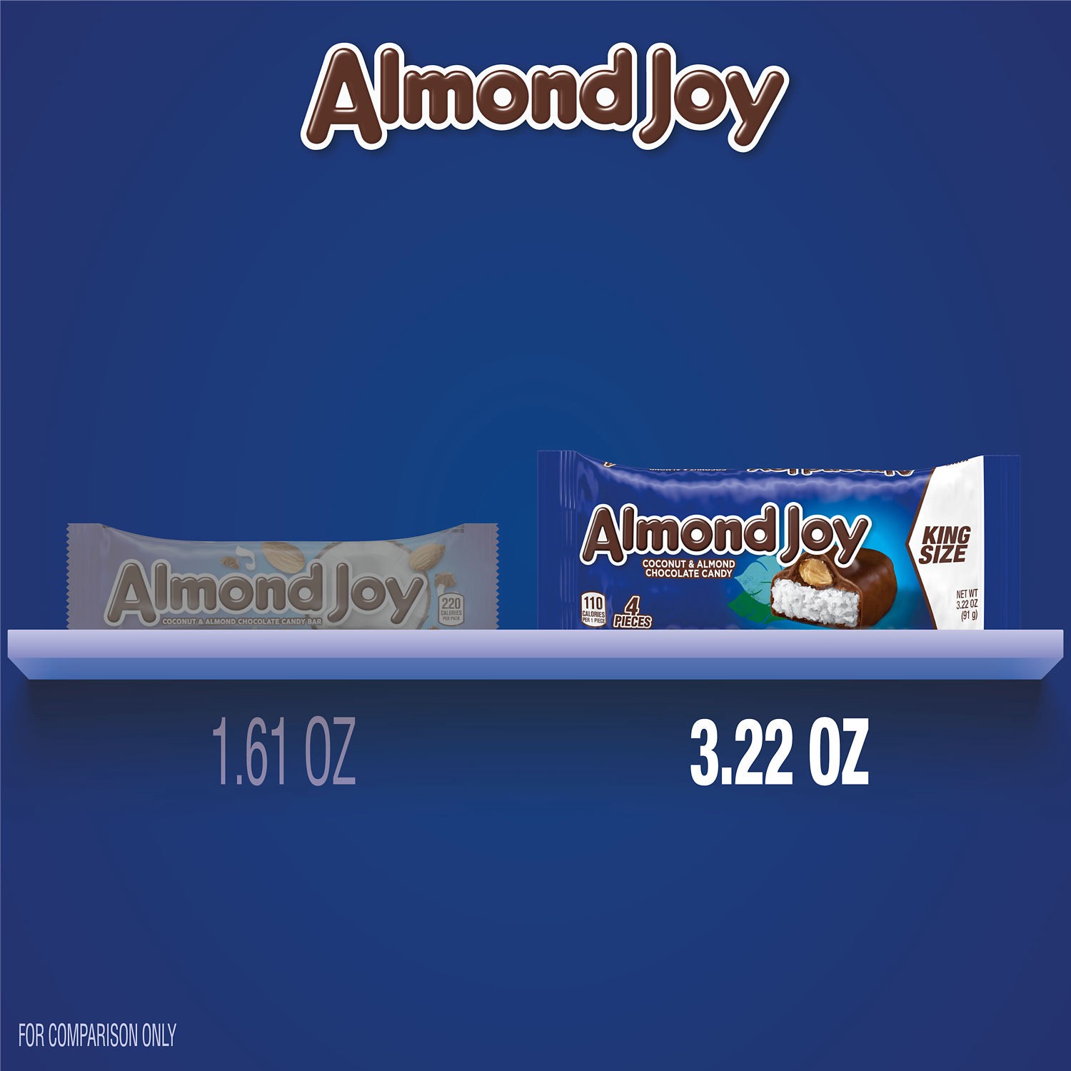 Almond Joy Coconut and Almond Chocolate Candy Bars, Gluten Free, 3.22 oz, King Size Pack (4 Pieces)