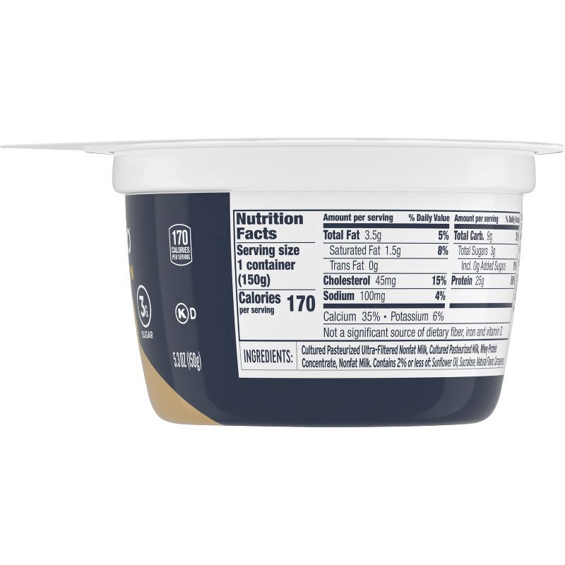 - 25G PROTEIN PER SERVING: A 5.3-ounce serving provides 25g of protein per serving - that's 4X more than the leading traditional yogurt (traditional yogurt has 6g of protein per 6-ounce serving)
