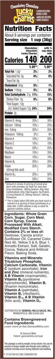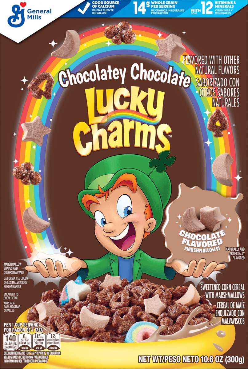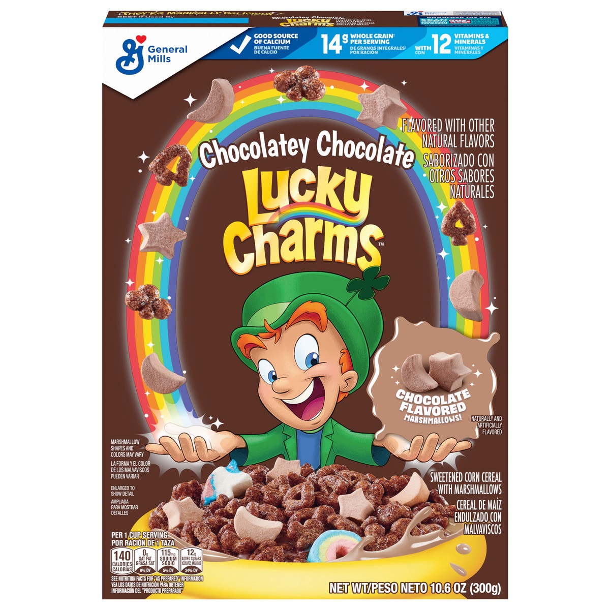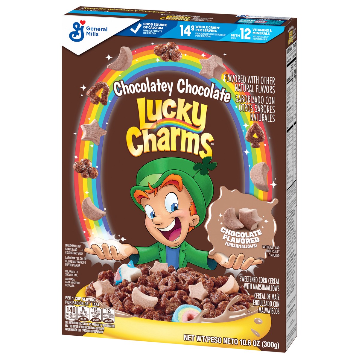 Lucky Charms Chocolatey Chocolate Cereal with Marshmallows, Kids Breakfast Cereal, Made with Whole Grain, 10.6 oz