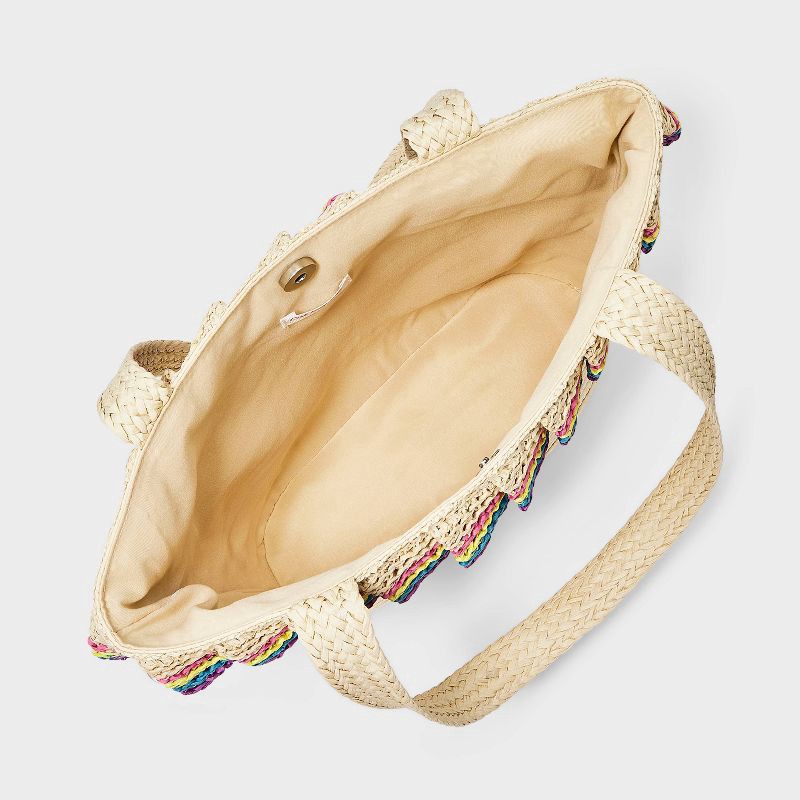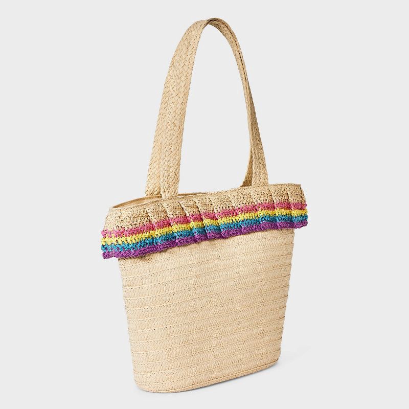 Girls' Paper Straw Colorful Ruffle Tote Bag - Cat & Jack™ Off-White