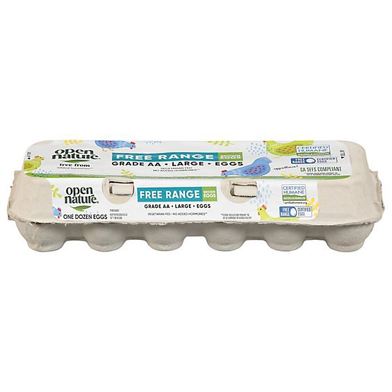 slide 1 of 1, Open Nature Eggs Brown Free Range Large - 12 Count, 12 ct