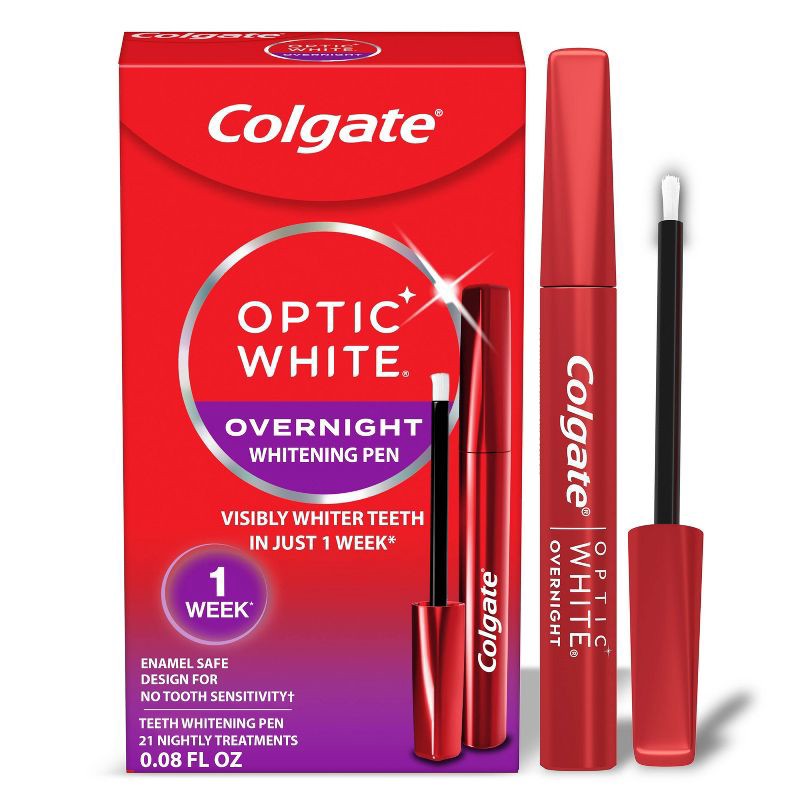 - Includes one (1) 0.08 fl oz Colgate Optic White Overnight Teeth Whitening Gel Pen, 21 Nightly Treatments