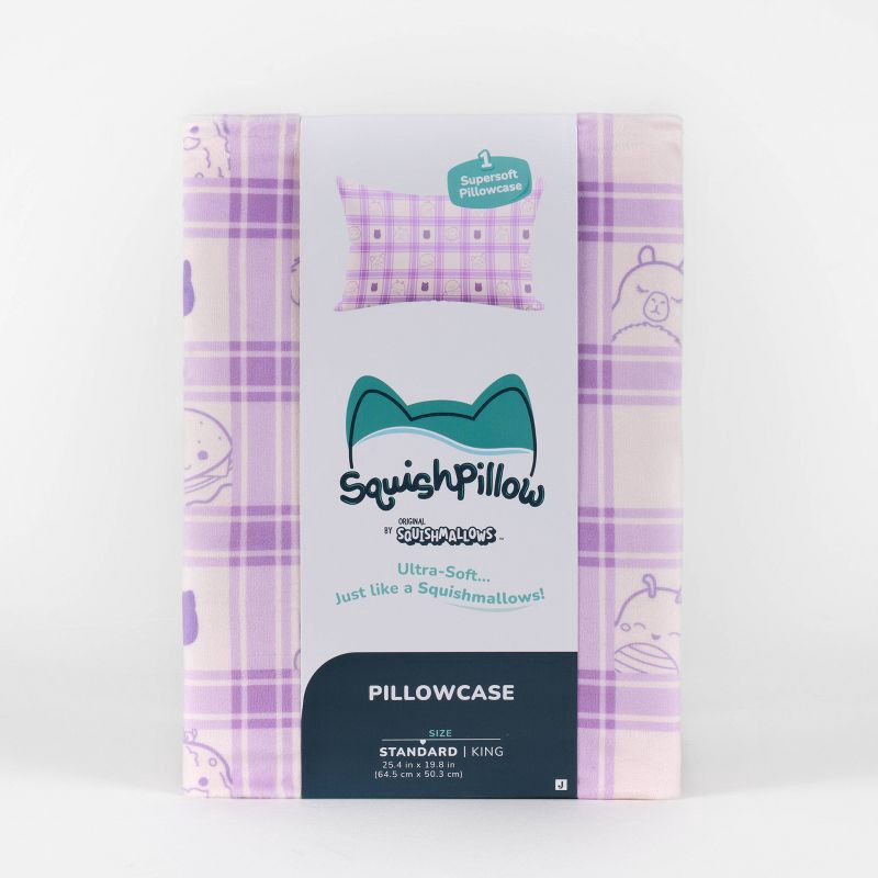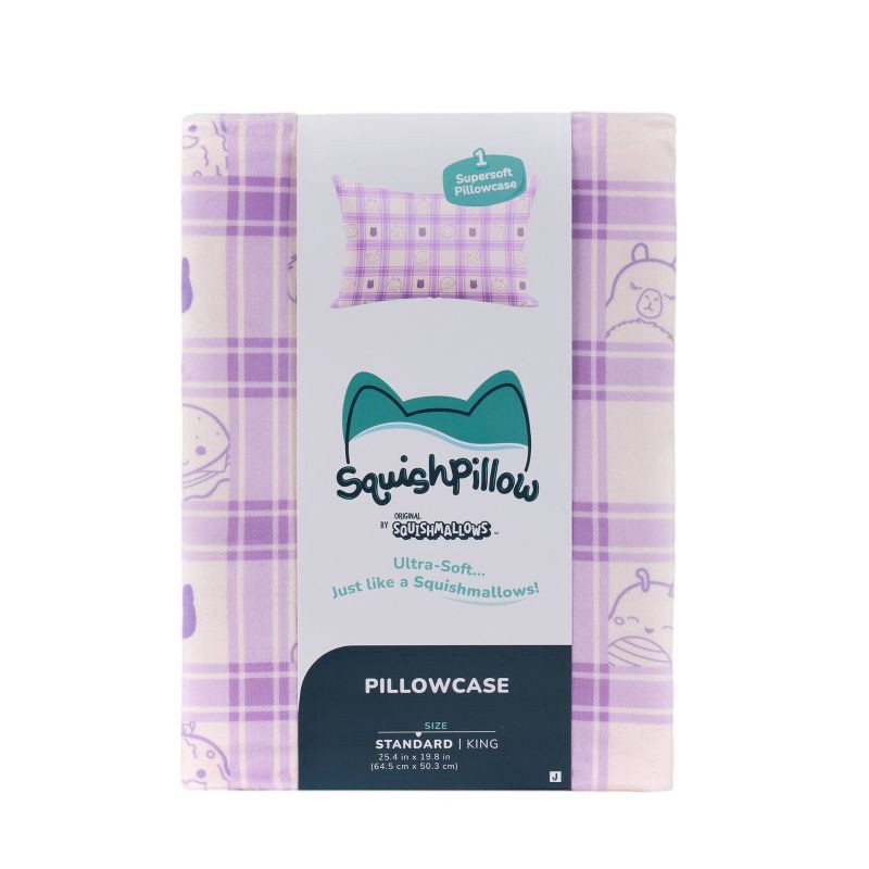 - FEATURE PRINT Squish your sleep with the “Gingham Daydream” SquishPillow Pillowcase, a pastel blue dreamscape featuring Squishmallows favorites like Benny the Bigfoot and Lijjian the Capybara.