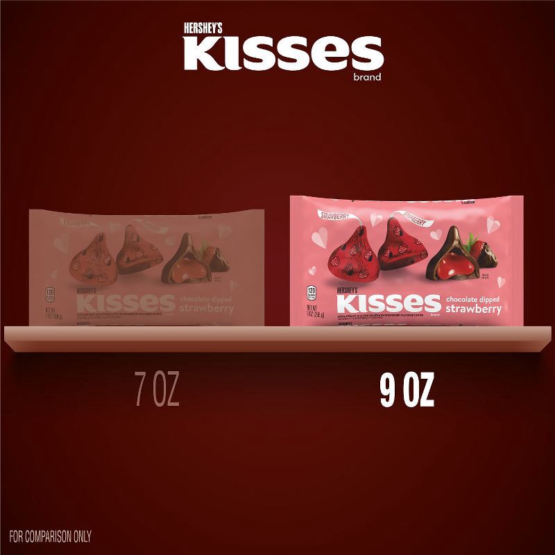 - Contains one (1) 9-ounce bag of HERSHEY'S KISSES Chocolate Dipped Strawberry Flavored Valentine's Day Candy