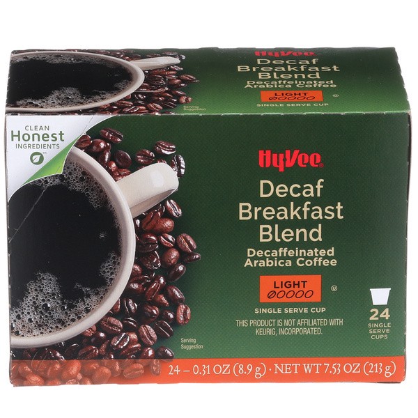 slide 1 of 1, Hy-vee Light Roast Decaf Breakfast Blend Decaffeinated Arabica Coffee Single Serve Cups- 24 ct, 24 ct