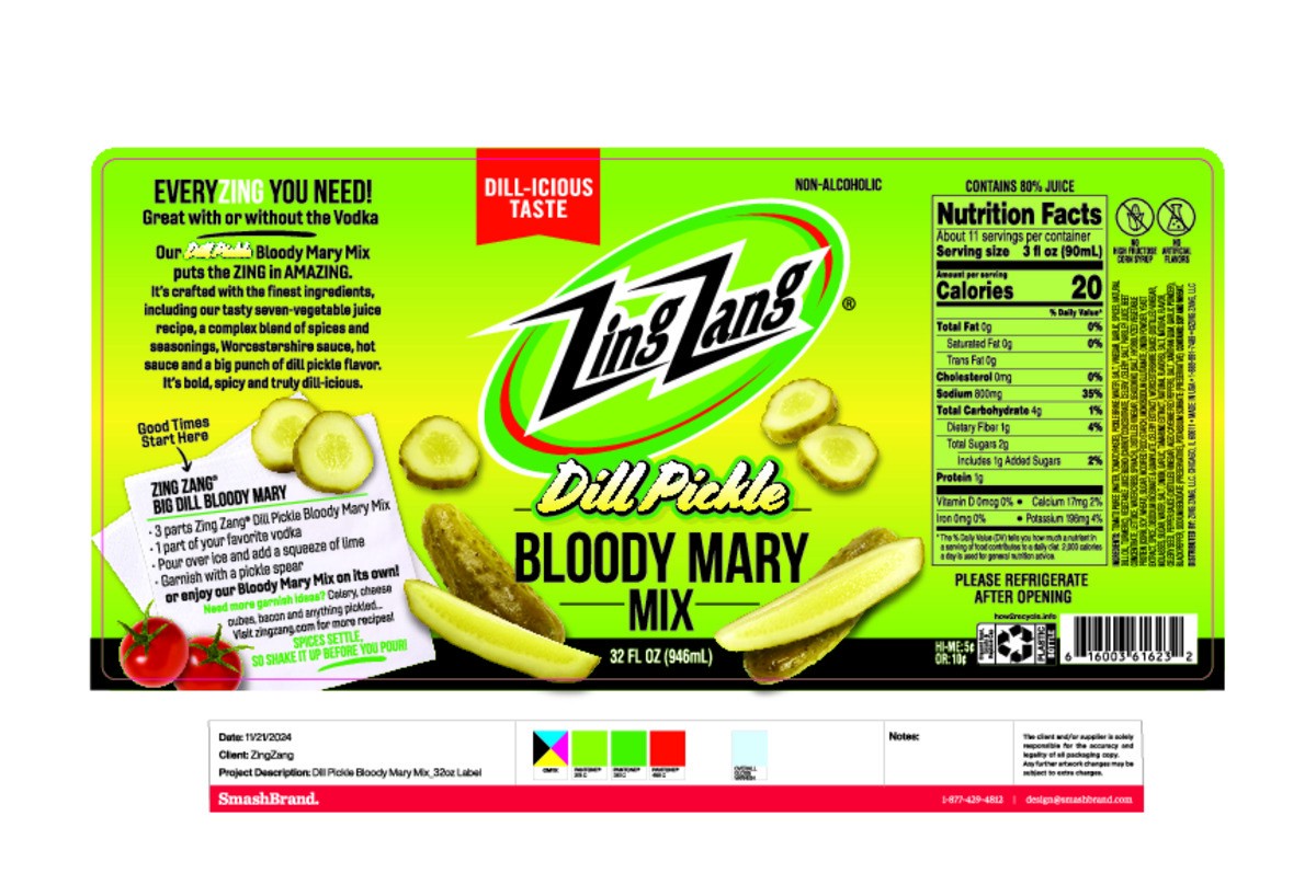 No artificial flavors. Dill-icious taste. Non-alcoholic. Our dill pickle bloody mary mix puts the zing in amazing. It's crafted with the finest ingredients, including our tasty seven-vegetable juice r…
