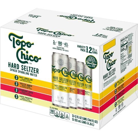 Topo Chico Hard Seltzer is a Gluten Free Hard Seltzer with only 100 Calories & 4 7% ABV, that brings a unique twist to classic flavors including: Tangy Lemon Lime, Strawberry Guava, Pineapple Twist an…