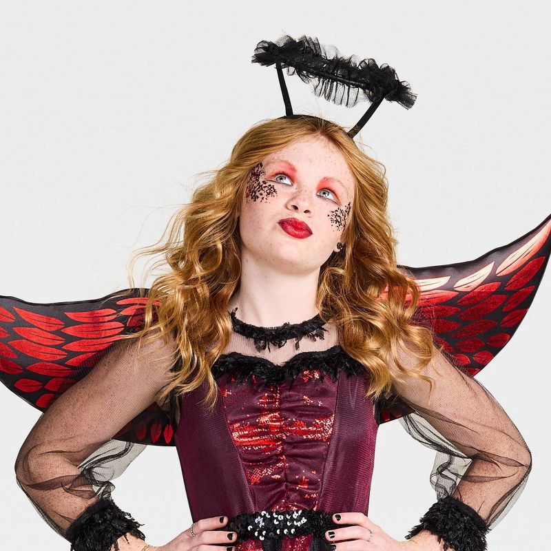 Your kid will be ready for the Halloween fun in this Dark Angel Costume from Hyde and EEK! Boutique™. This costume includes a headpiece, a pair of wings and a long-sleeve dress. The dress features a m…