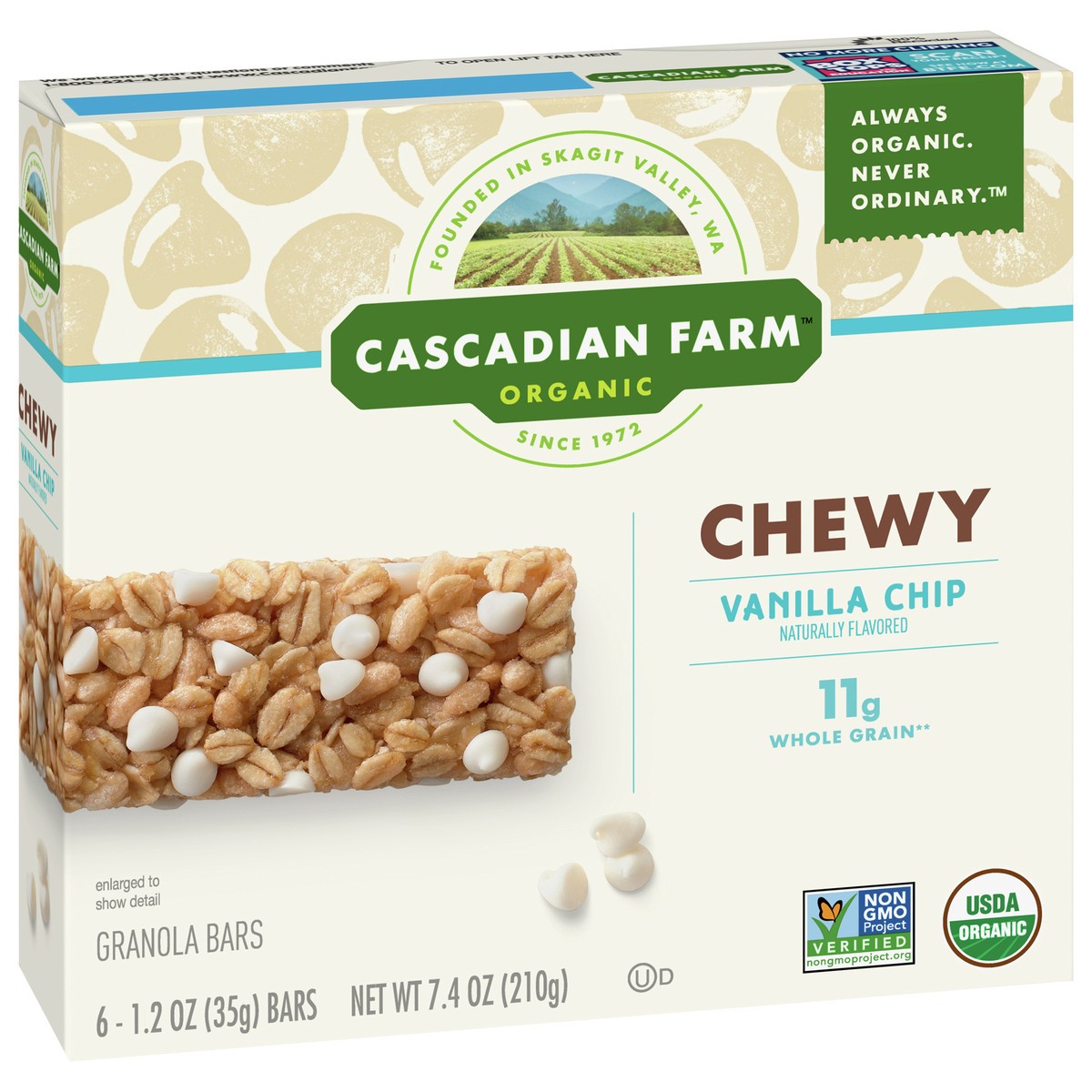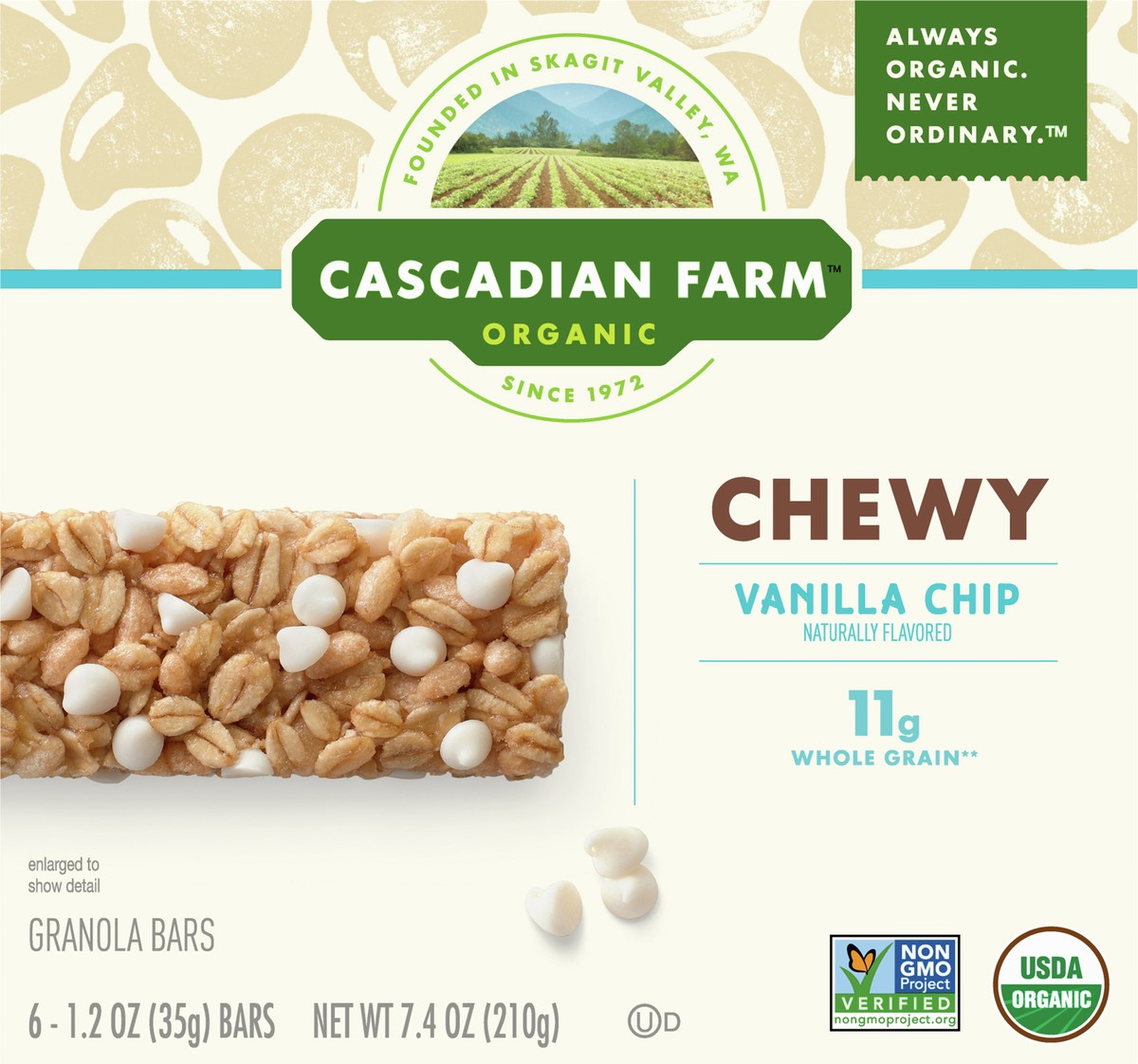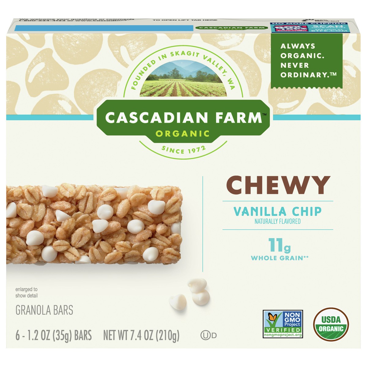 Cascadian Farm Organic Vanilla Chip Chewy Granola Bars, 6 Bars, 7.4 oz.