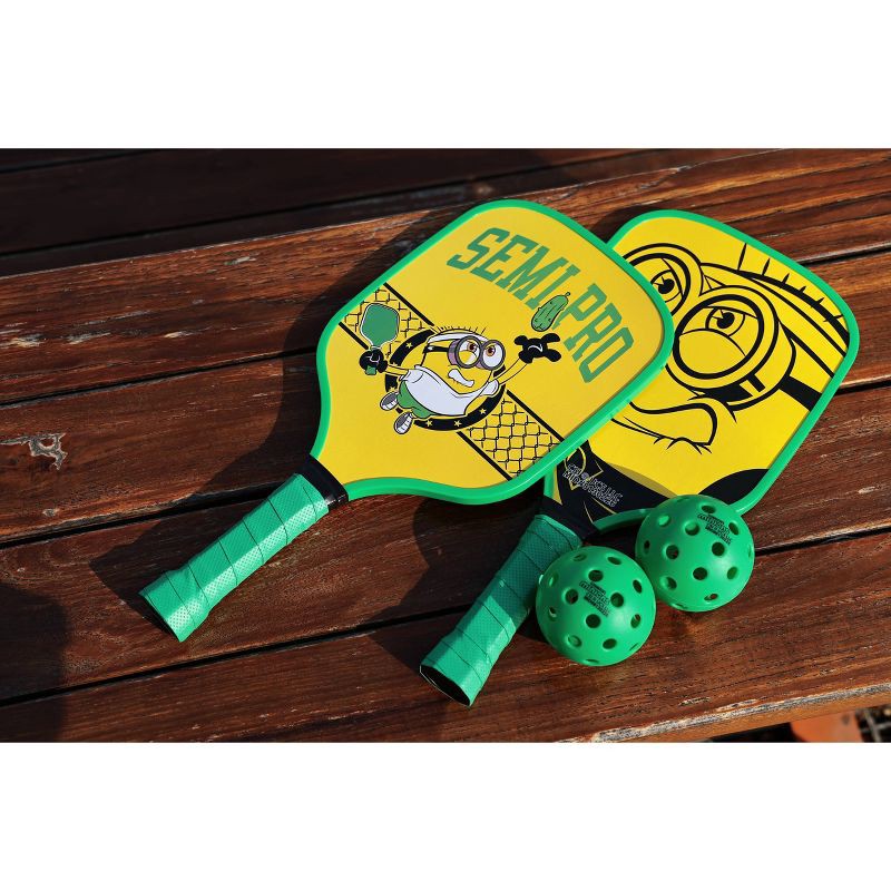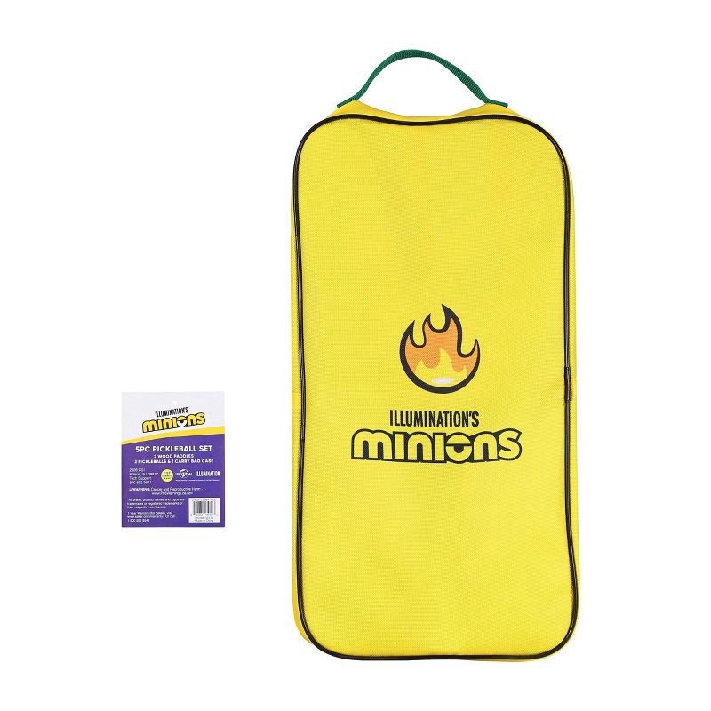 Bring playful energy to the court with the Minions 5‑Piece Pickleball Set. Officially licensed by Illumination, this themed kit includes two wood paddles, two bright green pickleballs, and a yellow ca…