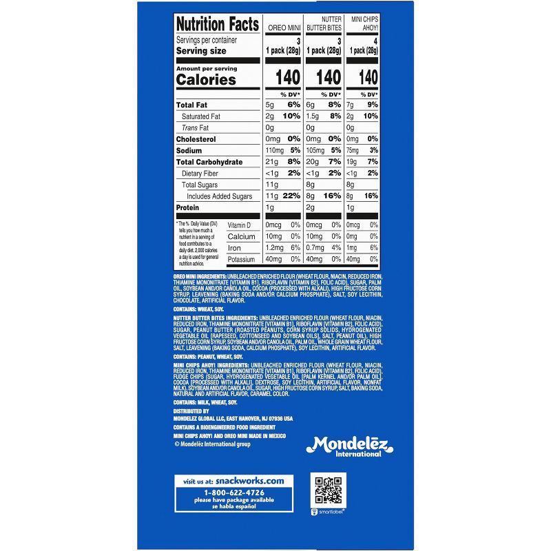 This Nabisco Cookie Variety Pack includes OREO Mini cookies, Nutter Butter Bites and CHIPS AHOY! Mini for easy, on-the-go snacking. These cookie packs are bite-size versions of classic cookies, just r…