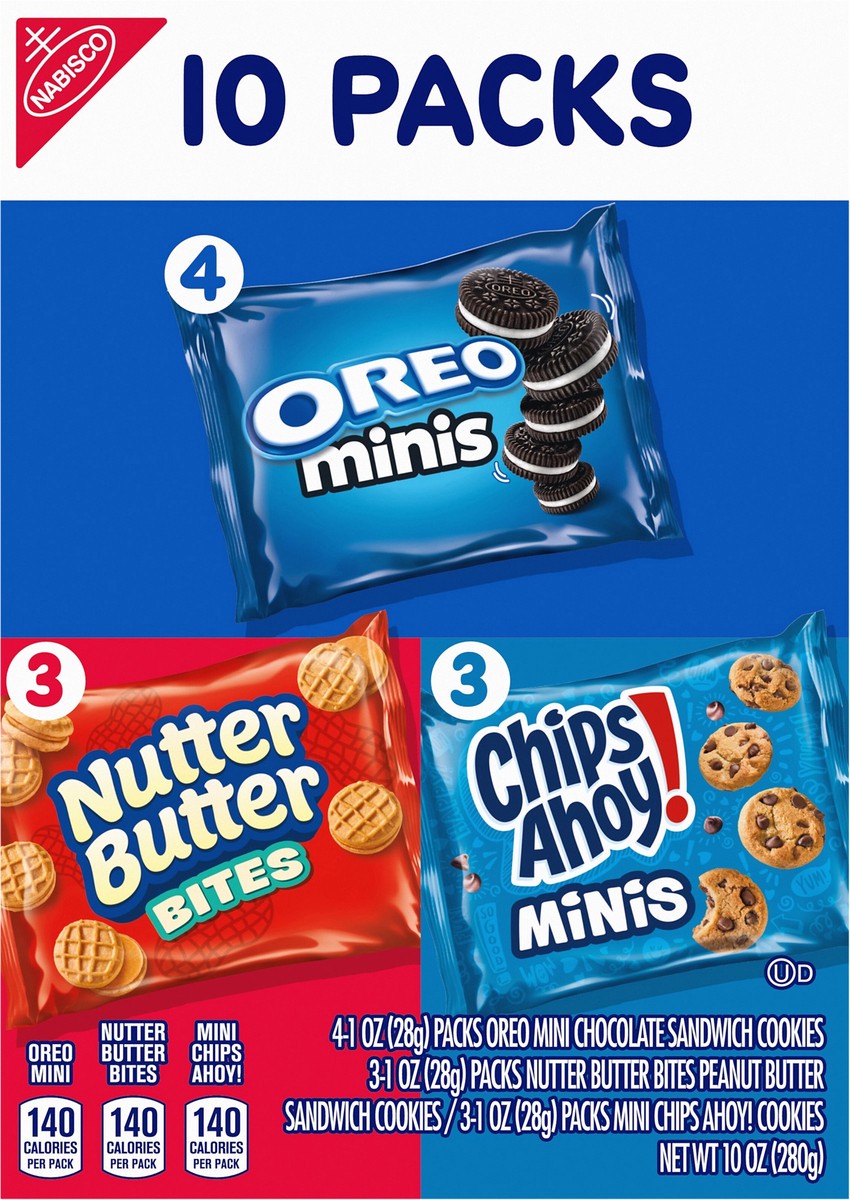 Chips Ahoy!/Nutter Butter/Oreo Nabisco Cookie Variety Pack, OREO Mini, Nutter Butter Bites, CHIPS AHOY! Mini, 10 Snack Packs