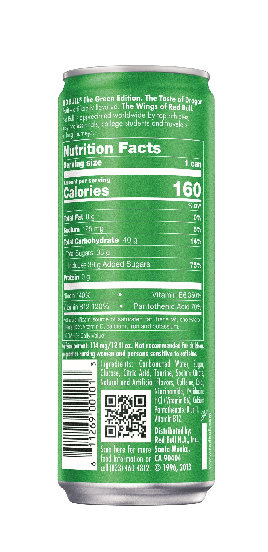- Enjoy the exotic taste of Dragon Fruit in the Red Bull Green Edition; Features taurine, an amino acid, plus four essential B-group vitamins B3, B6, B12 and B5, which contribute to normal energy-yielding metabolism