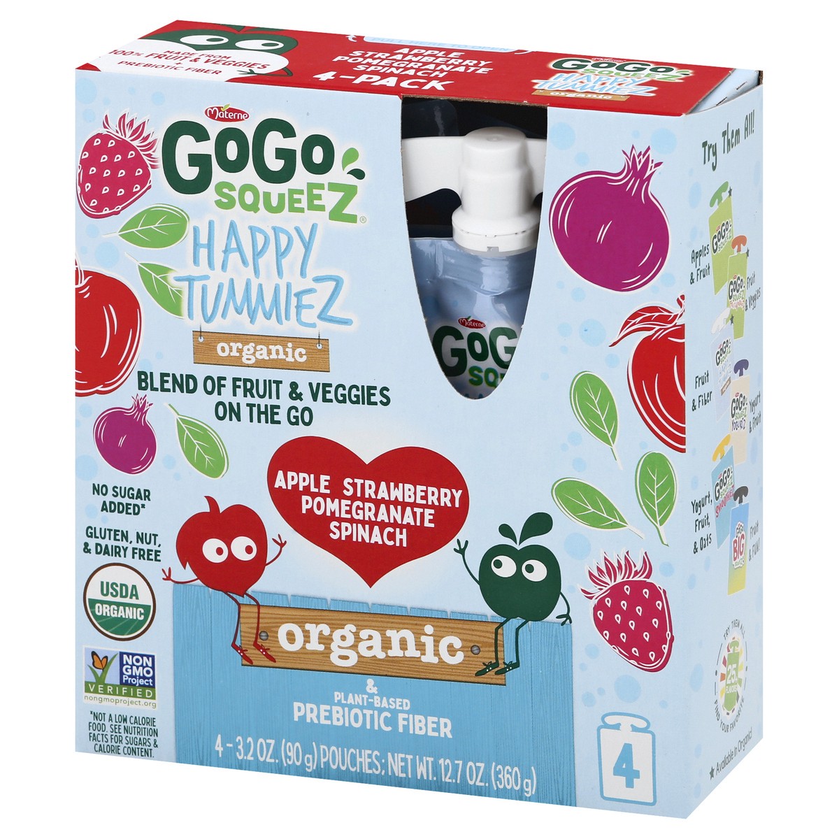 GoGo squeeZ Organic Apple Strawberry Pomegranate Spinach Fruit & Veggies - 4 ea