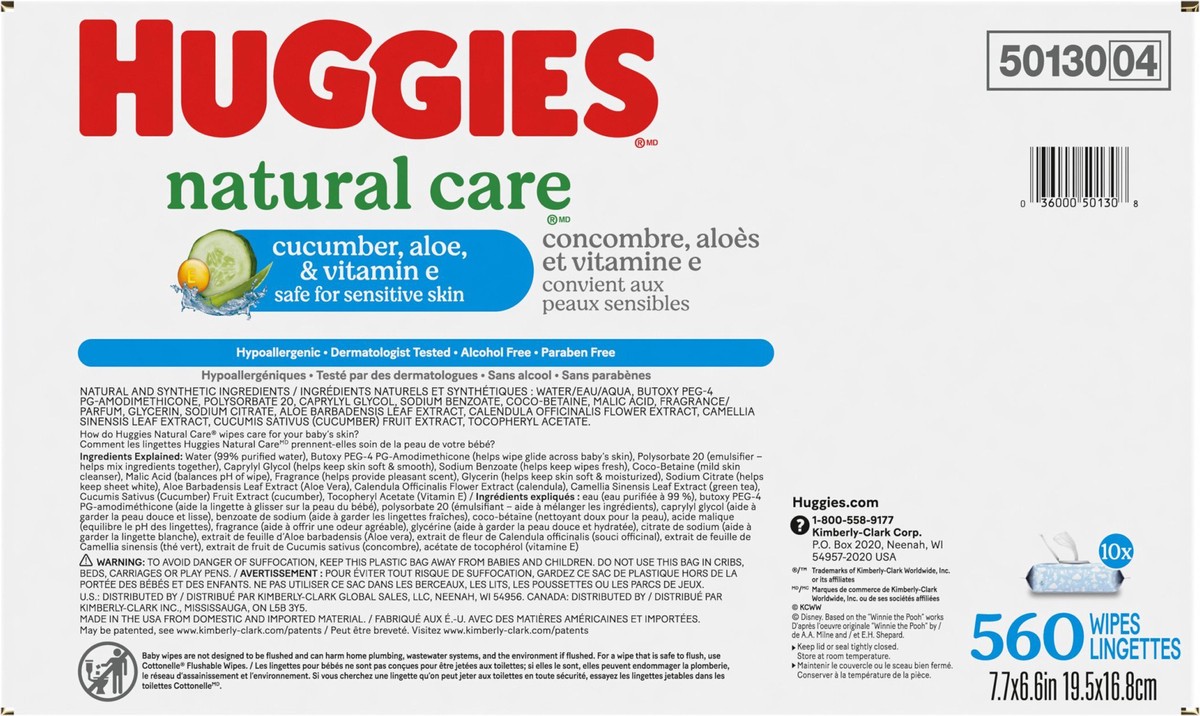 Huggies Natural Care Scented Cucumber Baby Wipes Flip-Top Packs 560 Wipes Total - 10 Count