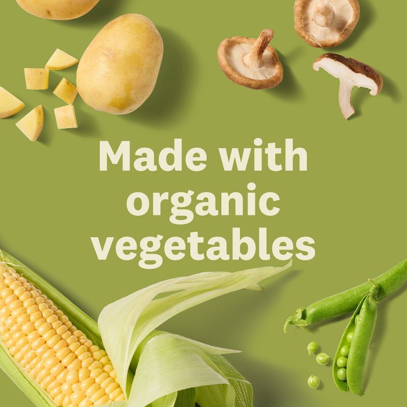 ORGANIC POTATOES, ORGANIC PEAS, ORGANIC MUSHROOMS, ORGANIC CORN, ORGANIC ONIONS, FILTERED WATER, ORGANIC BROCCOLI, ORGANIC GREEN LENTILS, BABY LIMA BEANS (BABY LIMA BEANS, SEA SALT), ORGANIC LEEKS, OR…