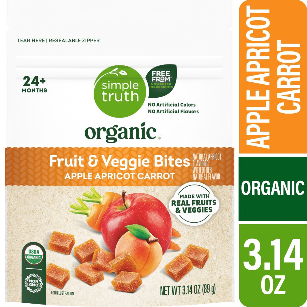 Simple Truth Organic® Apple Apricot Carrot Fruit and Veggie Bites make feeding your little one quick and simple. With USDA organic and non-GMO ingredients and made with real fruits and veggies, these …