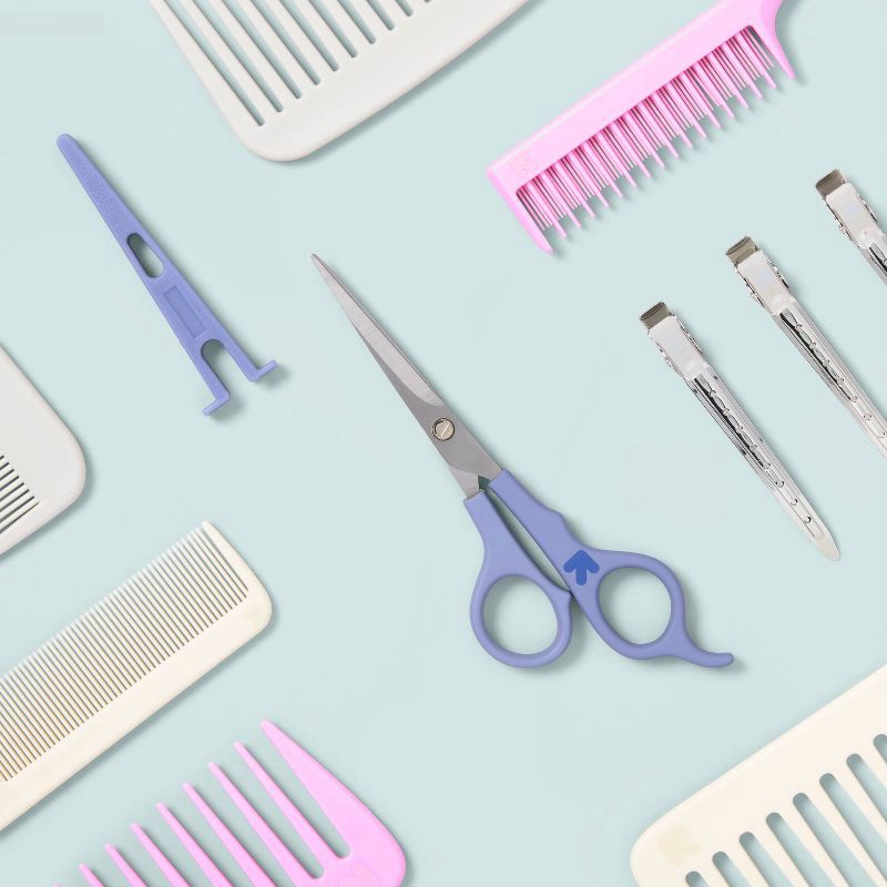 Trim hair or create a fantastic style with the Shears + Safety Blade Cover Hair Styling Scissors from up&up™. These stainless steel scissors have a micro-serrated blade for a seamless, precise haircut…
