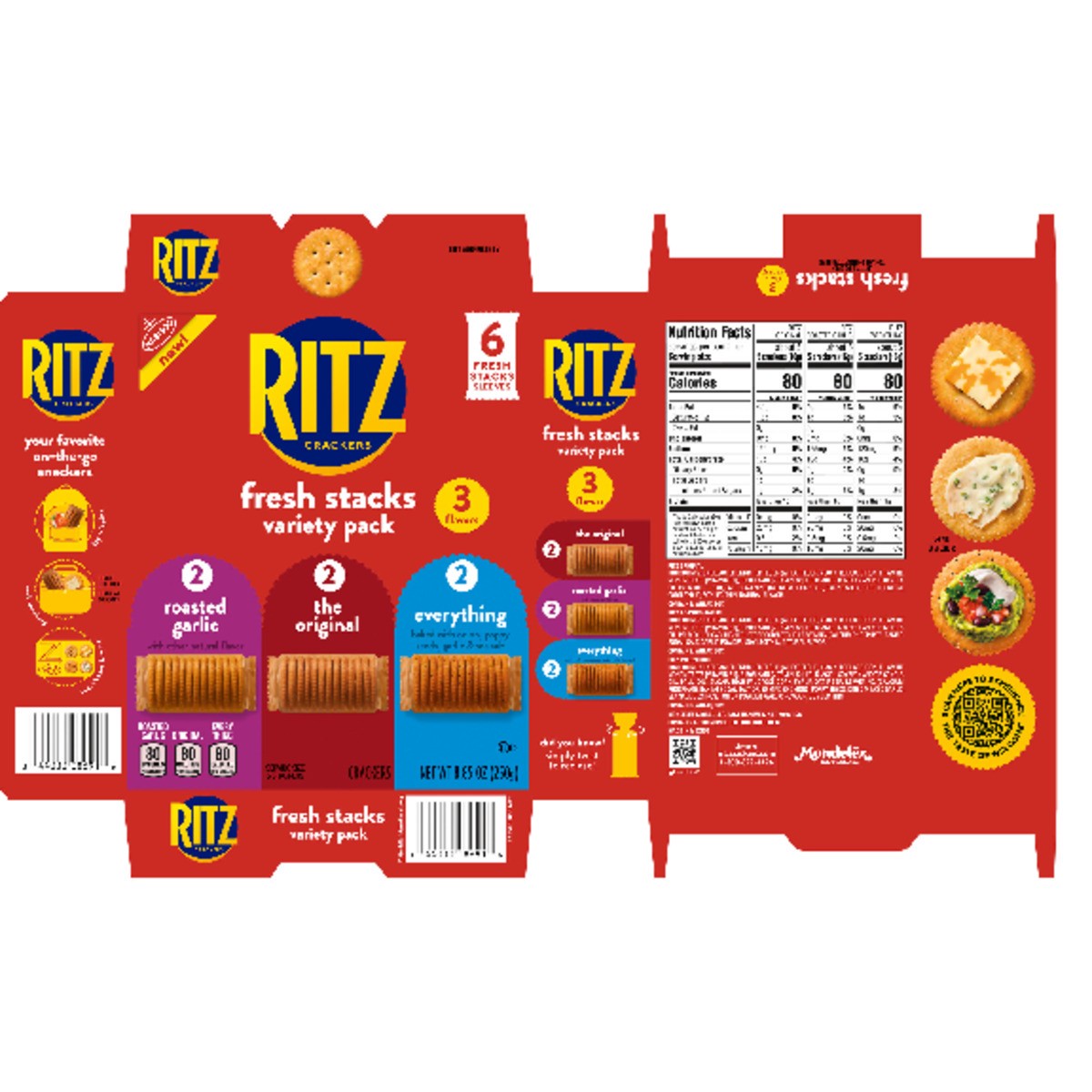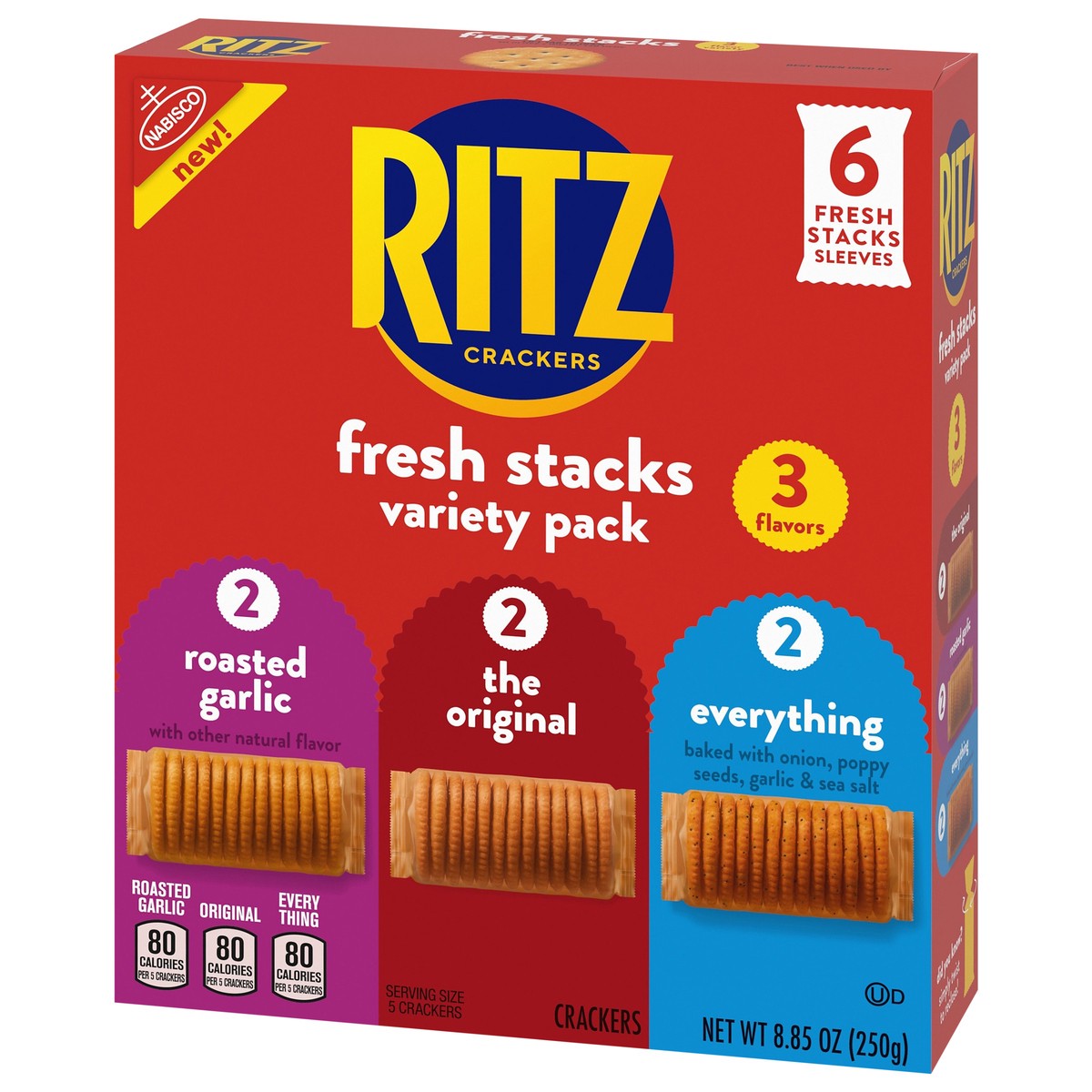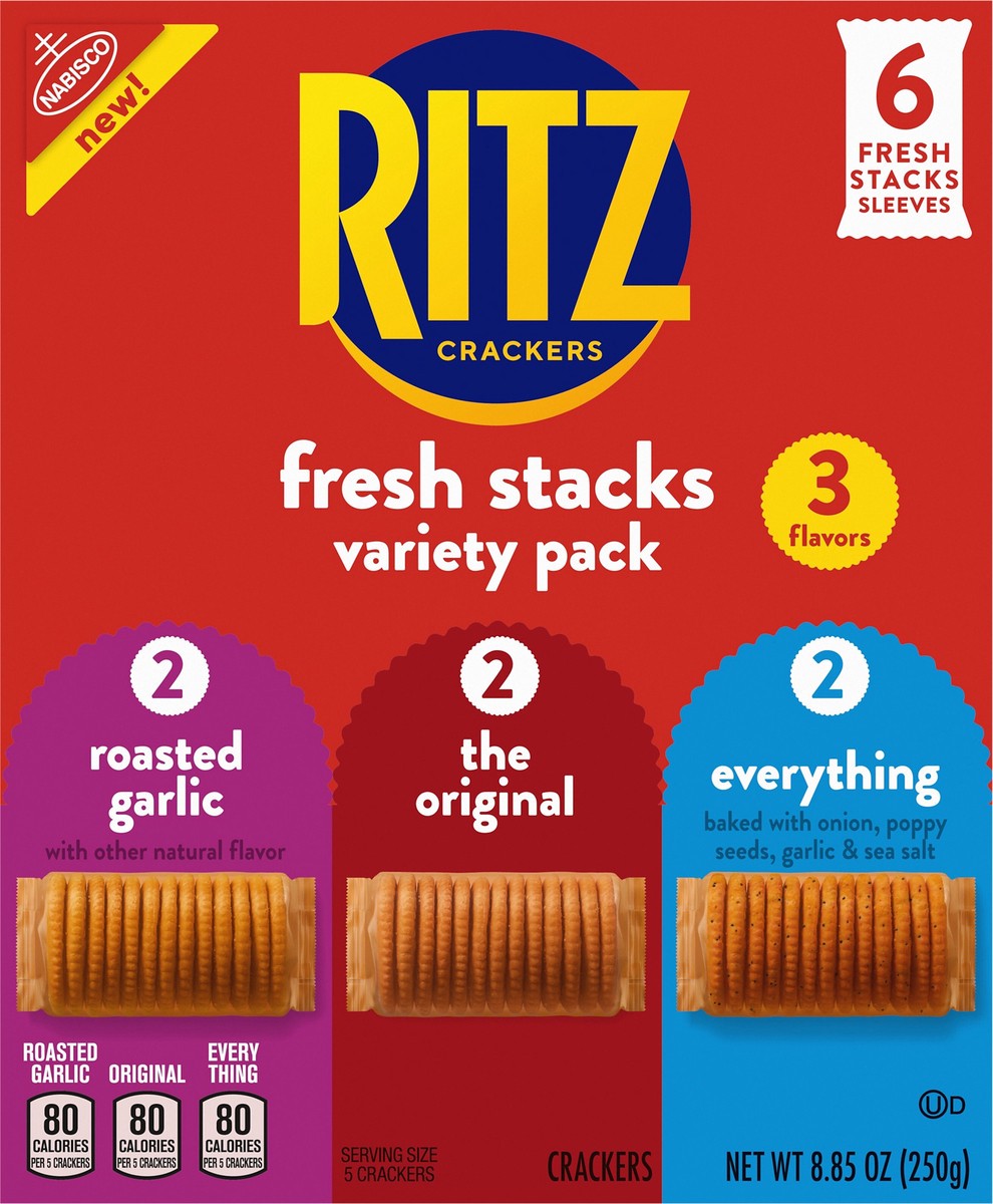 RITZ Fresh Stacks Original, Everything, and Garlic Butter Crackers Variety Pack, Travel Snacks, 8.85 oz (6 Multi Snack Packs)