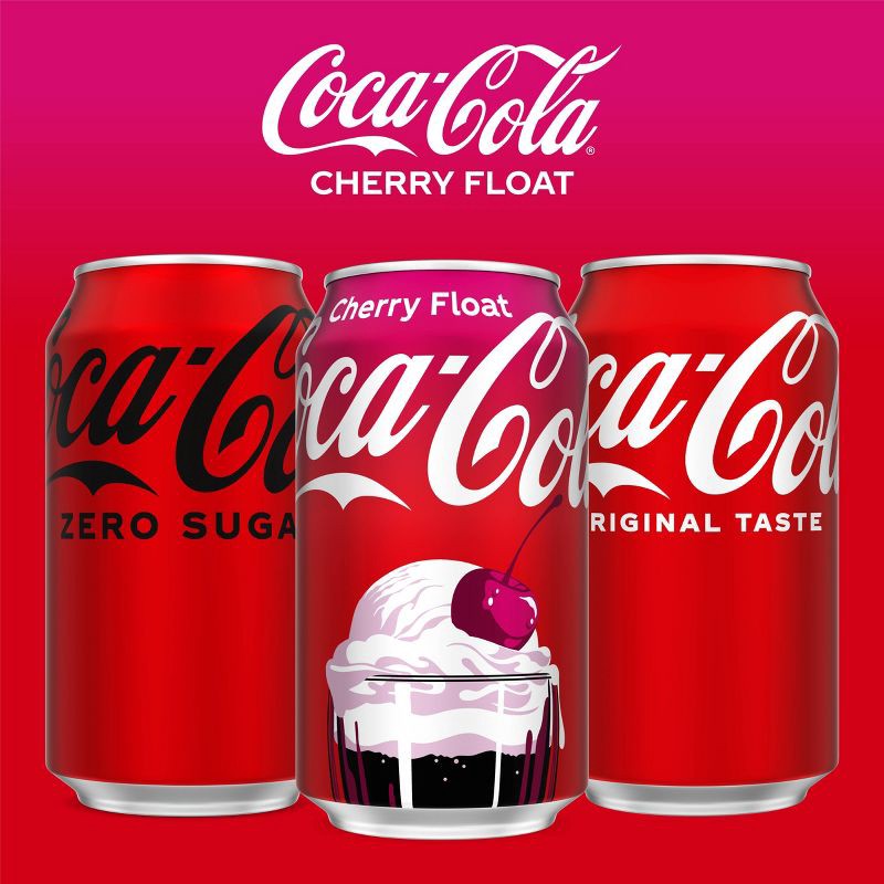 - 12 pack of 12 fl oz cans of Coca-Cola Cherry Float soda pop, made to turn ordinary sips into something unforgettable
